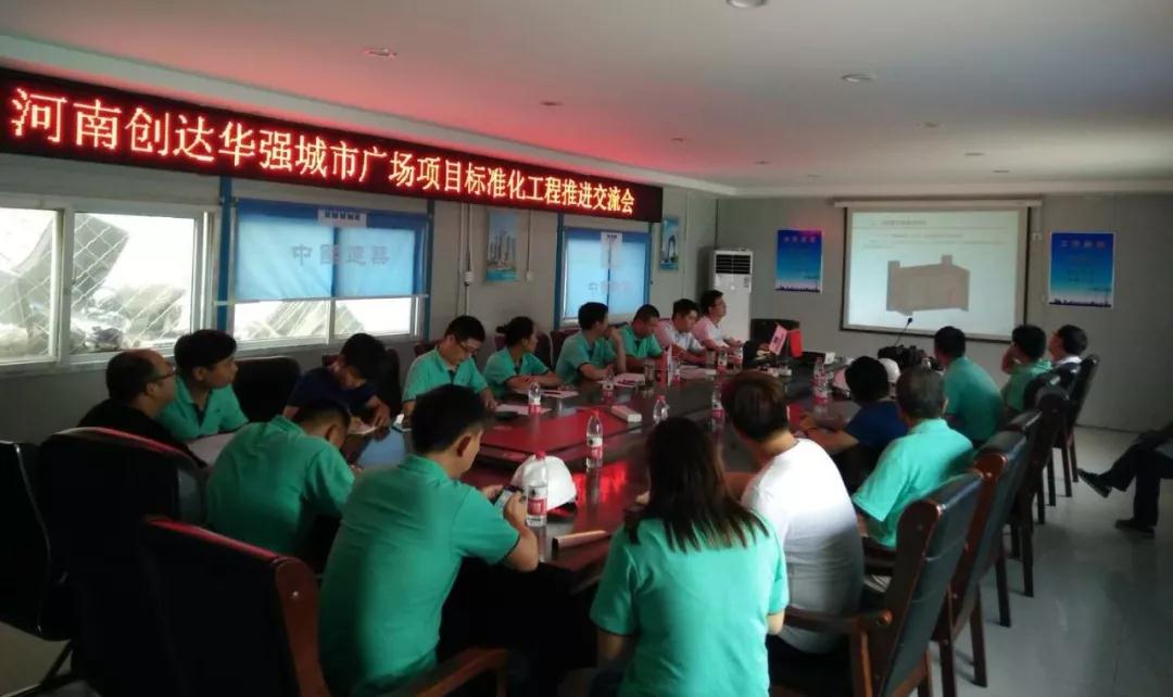 為落實(shí)河南省建設(shè)工程標(biāo)準(zhǔn)化管理工作推進(jìn)交流會(huì)會(huì)議精神,2018年7月21日 ,河南創(chuàng)達(dá)建設(shè)工程管理有限公司在華強(qiáng)城市廣場項(xiàng)目召開標(biāo)椎化工程推進(jìn)交流會(huì)。公司董事長楊明宇出席會(huì)議并做重要講話,中建八局項(xiàng)目經(jīng)理樊曉波對(duì)工程質(zhì)量標(biāo)準(zhǔn)化管理做了介紹,參會(huì)項(xiàng)目總監(jiān)及與會(huì)人員對(duì)標(biāo)椎化工程推進(jìn)展開深入交流。