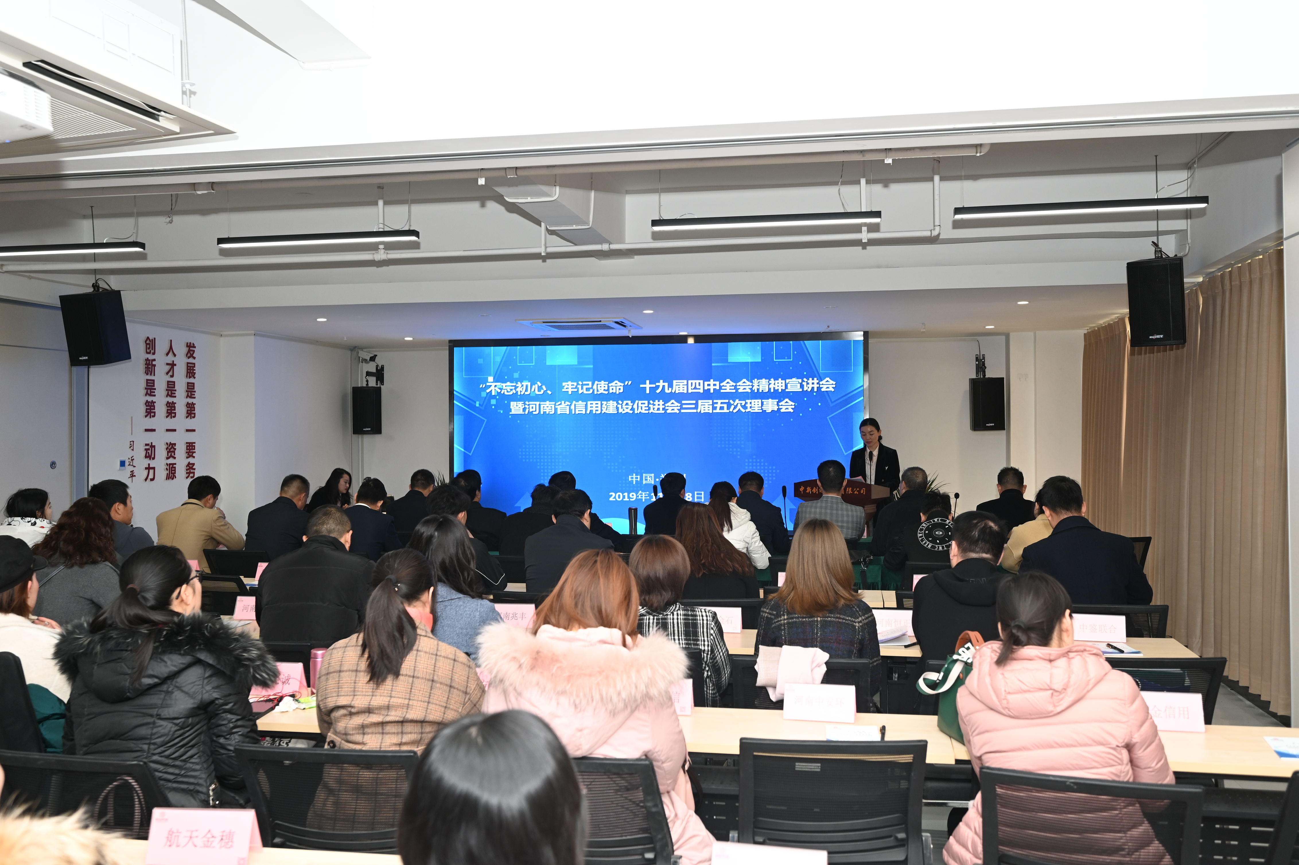 2019年11月28日,“不忘初心、牢記使命”十九屆四中全會精神宣講會暨河南省信用建設促進會三屆五次理事會在中新創(chuàng)達咨詢有限公司順利召開。公司董事長楊明宇當選河南省信用建設促進會會長。
