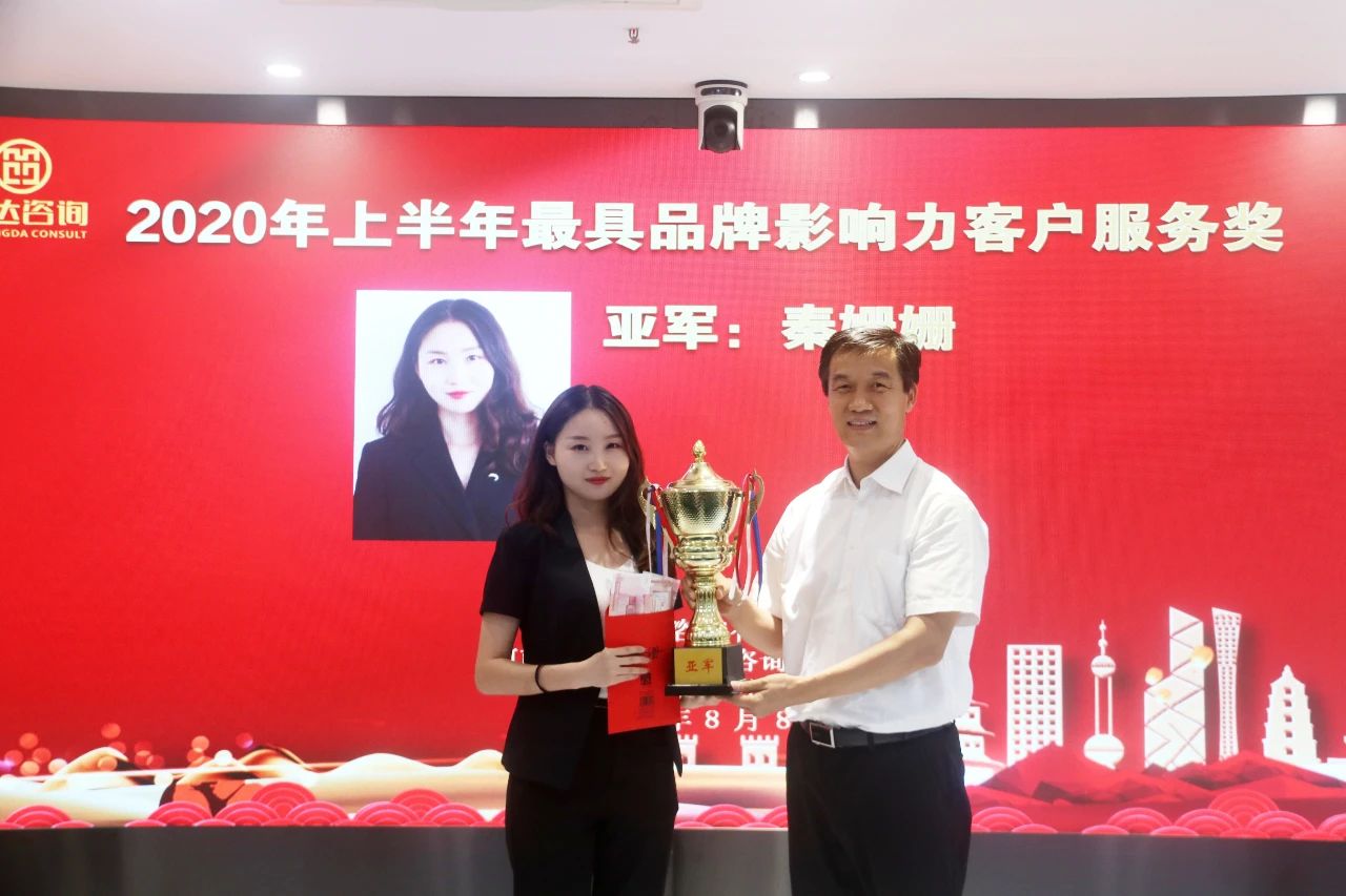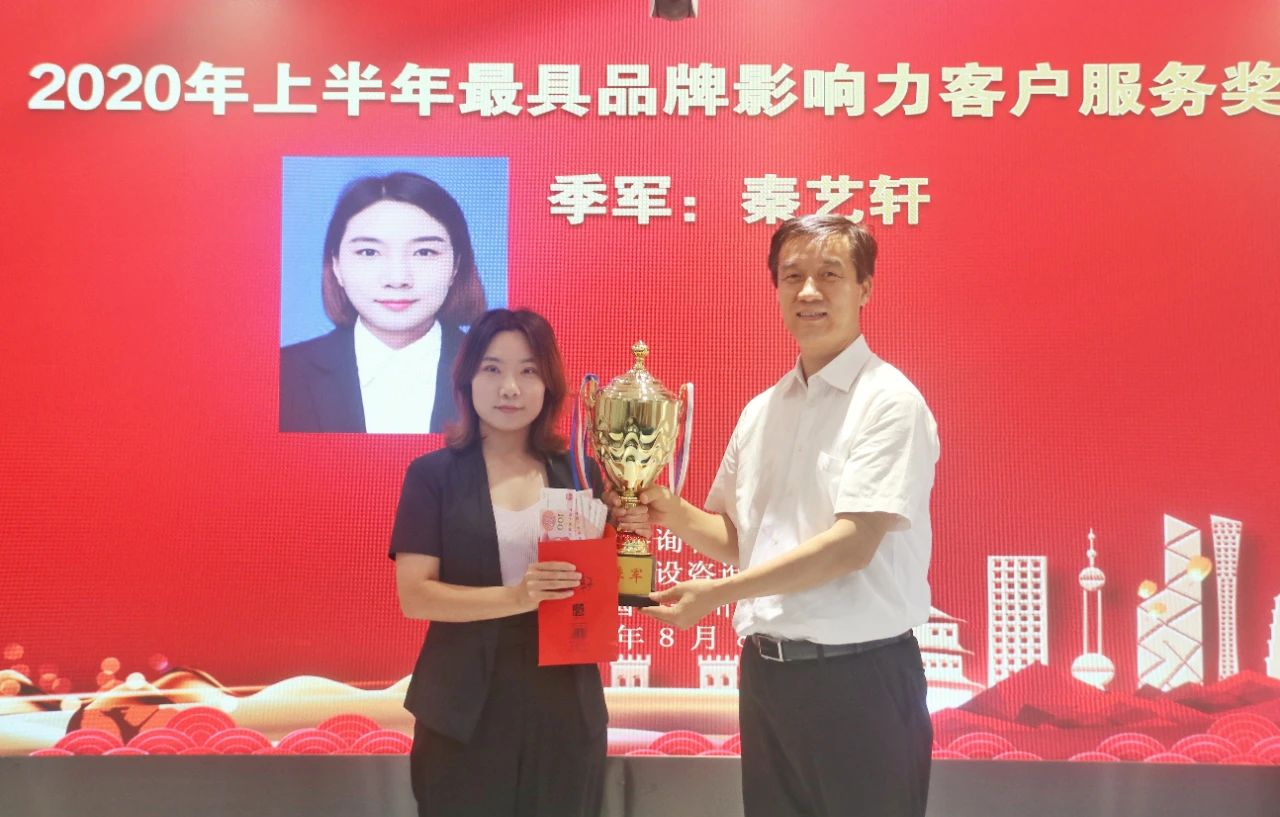 董事長楊明宇為在2020年上半年客戶服務(wù)工作中表現(xiàn)突出的先進個人頒發(fā)獎杯和獎金。