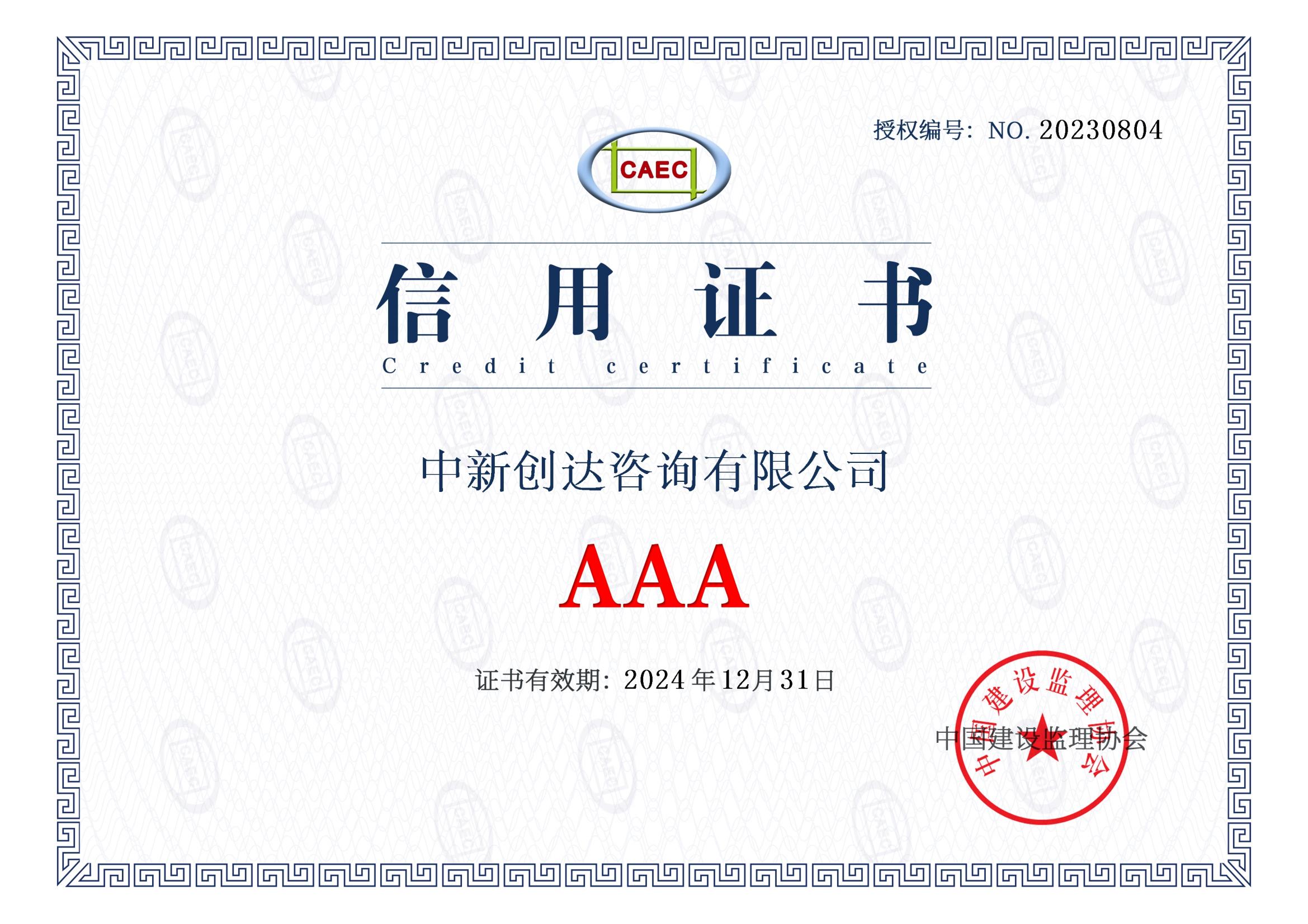 中國建設(shè)監(jiān)理協(xié)會AAA信用證書