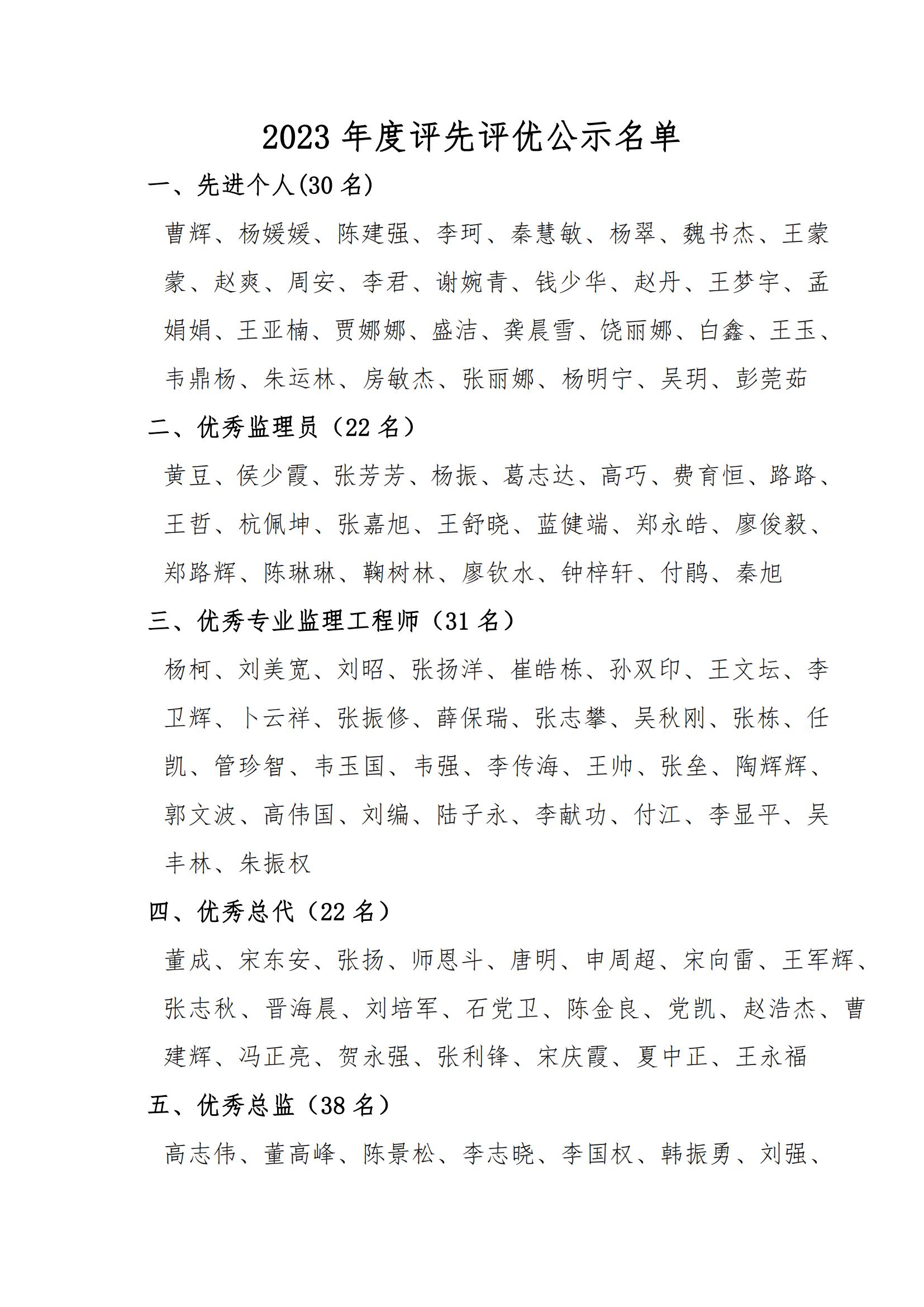 關(guān)于2023年度評先評優(yōu)評審結(jié)果的公示