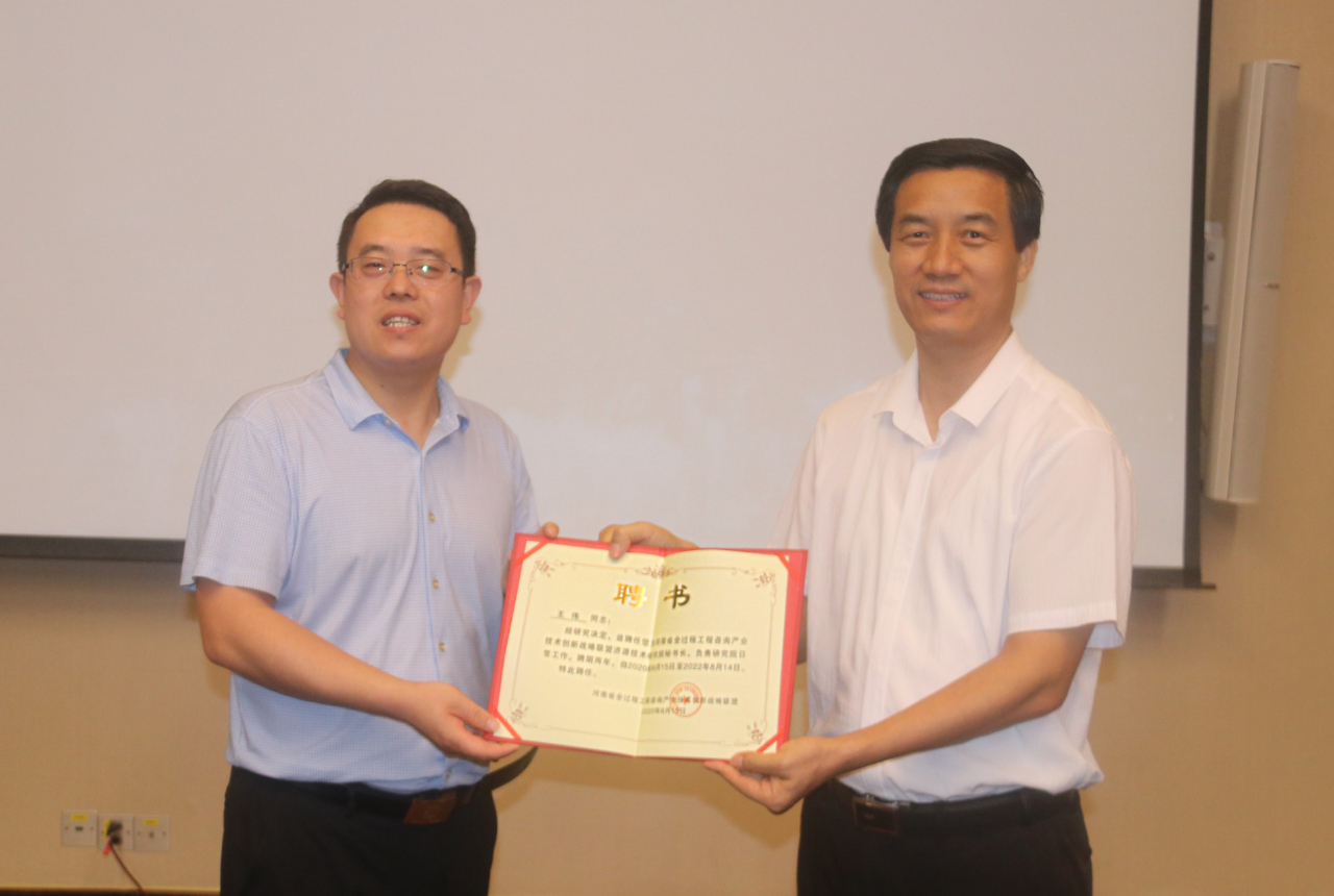 楊明宇理事長為濟源技術(shù)研究院秘書長王偉頒發(fā)聘書