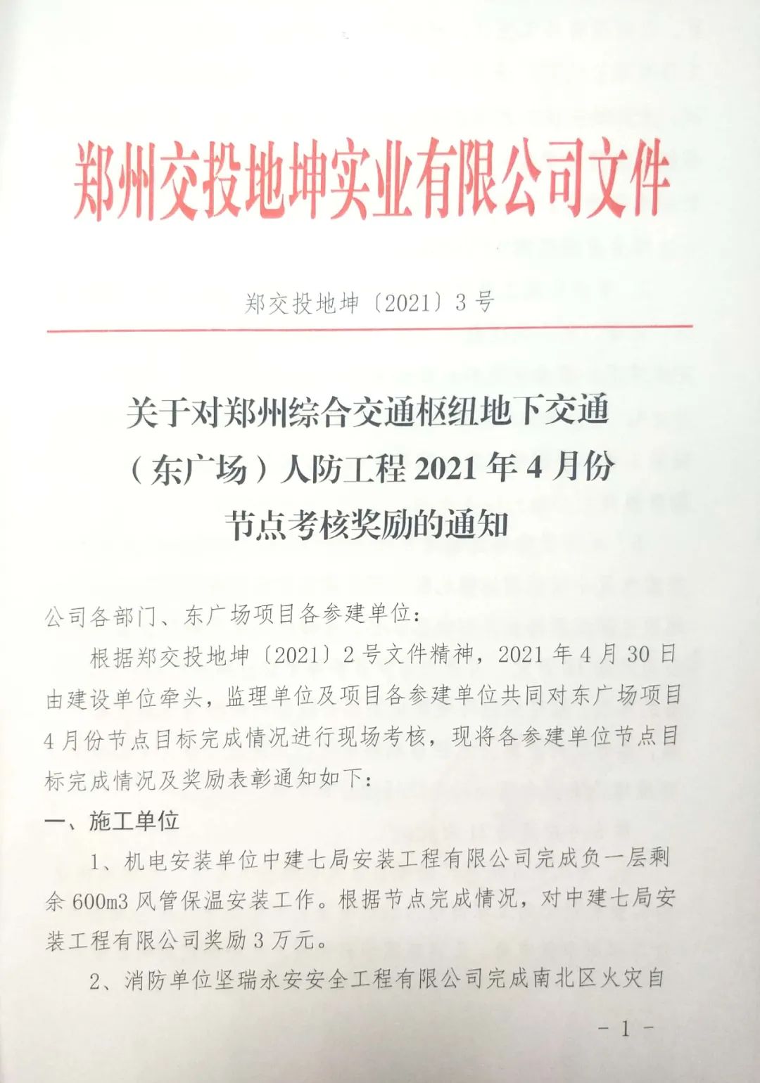 2021年5月28日,創(chuàng)達(dá)咨詢受到鄭州交投地坤實(shí)業(yè)有限公司的通報(bào)表揚(yáng),并給予3萬元獎(jiǎng)勵(lì)。我司項(xiàng)目部積極推進(jìn)各參建單位按照節(jié)點(diǎn)目標(biāo)要求加快項(xiàng)目施工,認(rèn)真執(zhí)行相關(guān)施工驗(yàn)收規(guī)范標(biāo)準(zhǔn),及時(shí)發(fā)現(xiàn)現(xiàn)場(chǎng)存在的問題并督促有效整改,確保了工程質(zhì)量和施工安全。