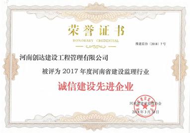 2017年度河南省建設(shè)監(jiān)理誠信建設(shè)先進單位